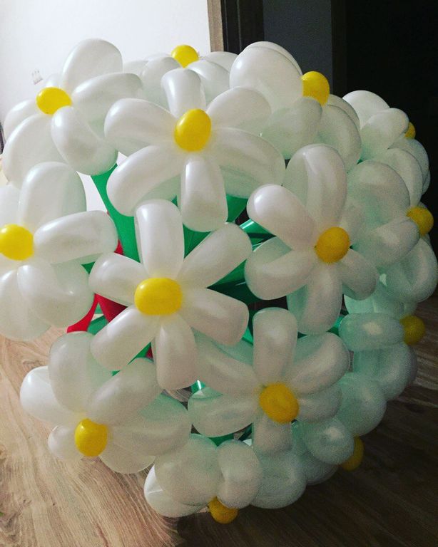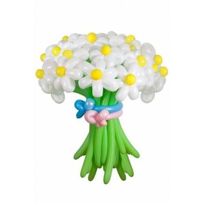 Букет цветов из шаров "Ромашки" - композиция из 15-ти цветков с бантиком. Стоимость композиции может меняется в зависимости от кол-ва цветков в букете. Мы можем изготовить подобный букет в любой цветовой гамме. Стоит только захотеть! Высота 1 м. Доставка по Новой Москве круглосуточно.