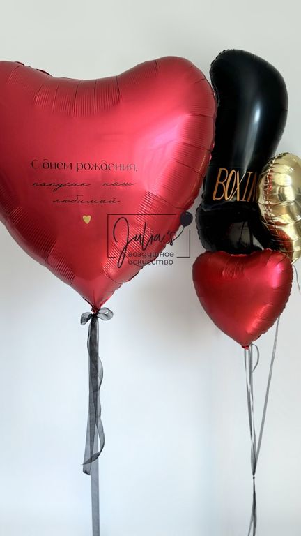 Связка из 3 шаров- фольгированная фигура,2 сердца