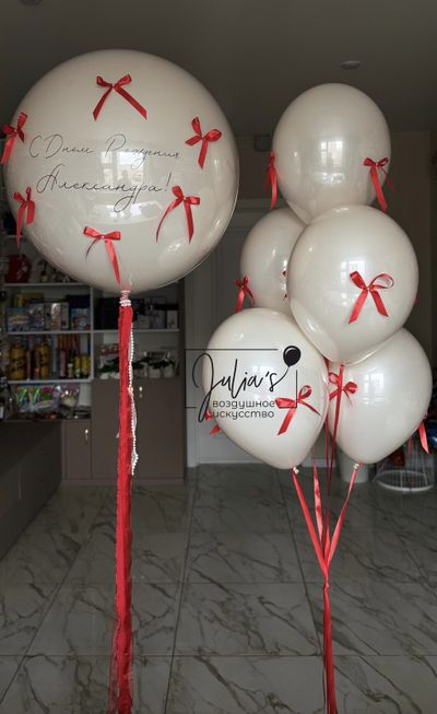 Стеклянного шара с индивидуальной надписью и бантиками