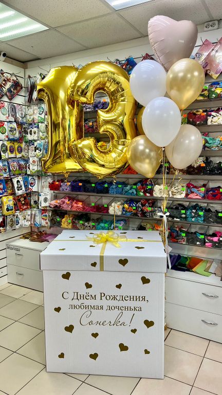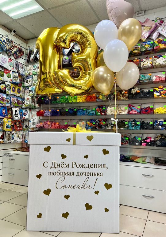 Цвет коробки, шаров, цифры и надпись можно менять!
