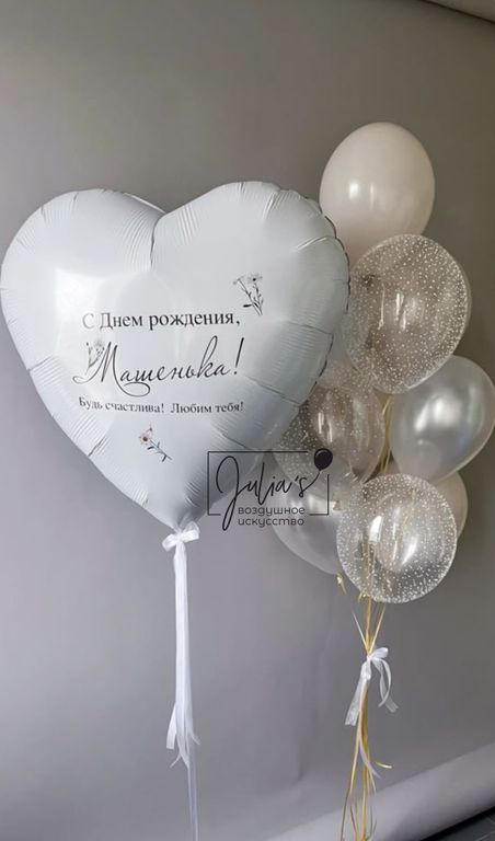 Сердце белое 76 см с индивидуальной надписью+ наклейки цветочки