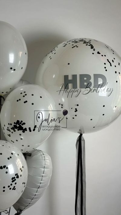 - Фонтан из 7 шаров (5 шаров даблстафф с конфетти и 2 фольгированных сердца)