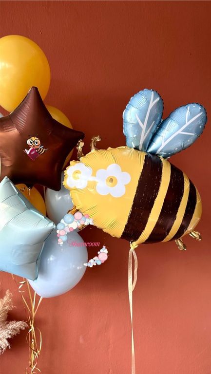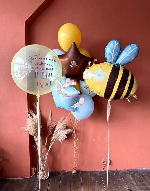 - Фонтан из 8 шаров (2 звезды с рисунком и 6 обычных шариков)