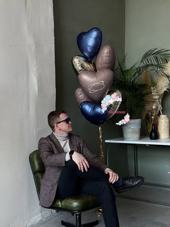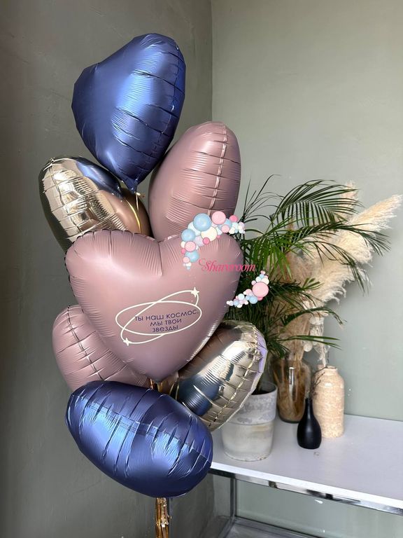 В фонтане 9 фольгированных сердец , на одном индивидуальная надпись.