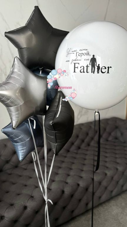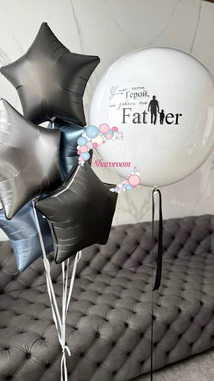 Стеклянный шар +Фонтан из 5 фольгированных звёзд