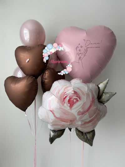 Фонтан из 6 шаров (3 сердца и 3 шара даблстаф)