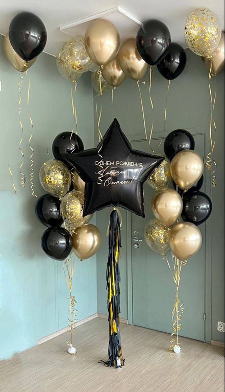 -12 шаров под потолок (3 обычных шара, 5 шаров хром, 4 шара с конфетти)