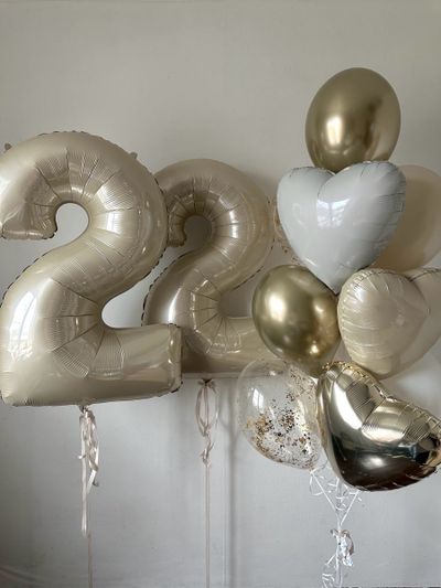 -Фонтан из 10 шаров (3 фольгированных сердца, 2 шара с конфетти, 2 шара хром, 3 обычных шара)