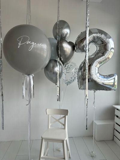 -Фонтан из 5 шаров (сердце, 1 шар с конфетти, 2 шара хром, 1 обычный шар)
