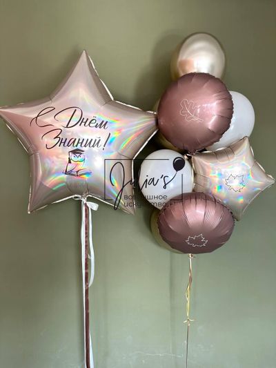 - Фонтан из 8 шаров (2 круга с индивидуальным рисунком, 1 звезда с рисунком, 3 шара хром, 2 обычных шара)