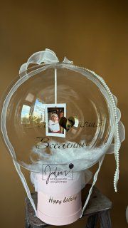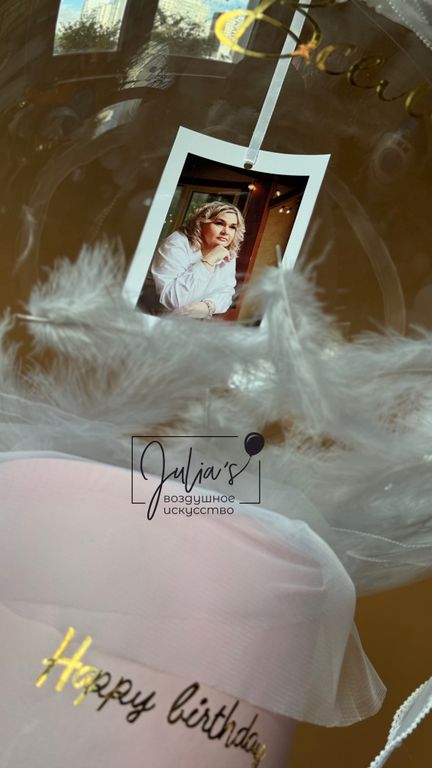 Шар с перьями и индивидуальной надписью + фотография (шар надувается воздухом)