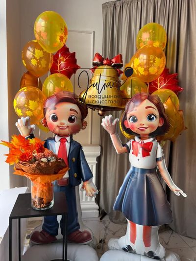 Ходячие фольгированные фигуры ученик (размер шара 156см) и ученица (размер шара 153см)