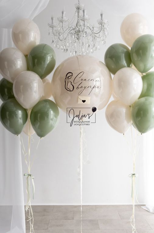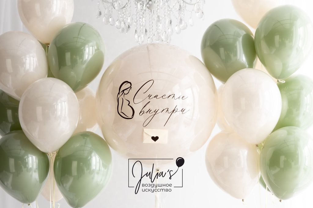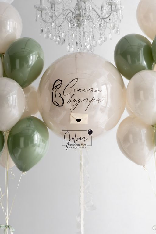 Стеклянный шар ( размером 61 см ) с индивидуальной надписью ( текст можно менять), на данном шаре имеется конверт внутри которого перья в цвет вашего пола