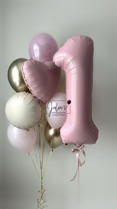 Связка из 10 шаров ( Фольгорованный шар сердце и круг - размером 45 см , 2 шара хром золото размером 30 см , 6 обычных шаров размером 30 см)