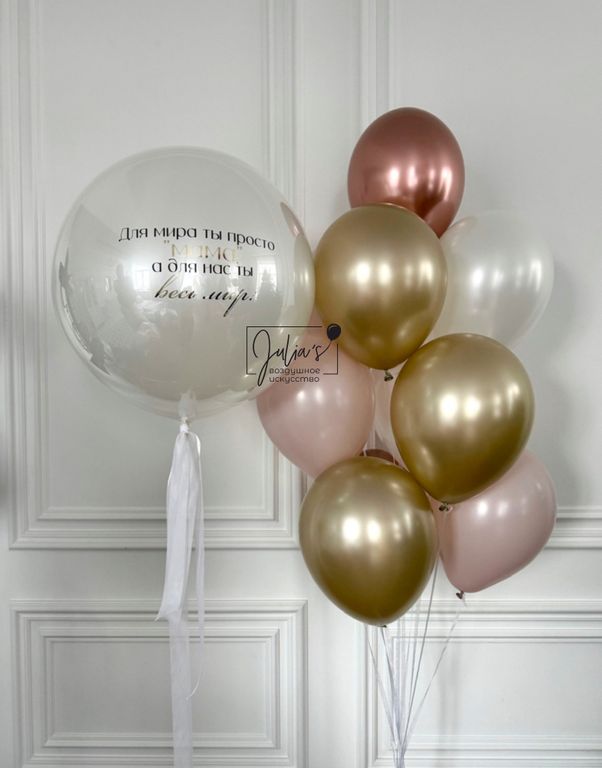 Связка из 10 шаров- 3 шара хром золото,2 простых латексных розовые, 2 белый хром,3 розовое золото хром