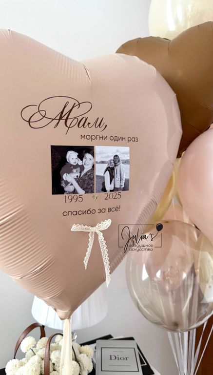 сердце с индивидуально надписью и фото( размером 91см)