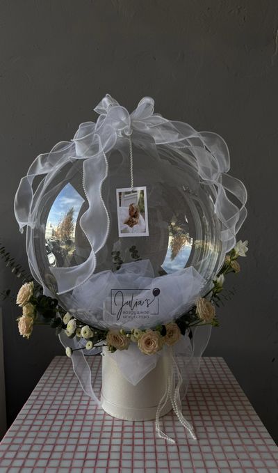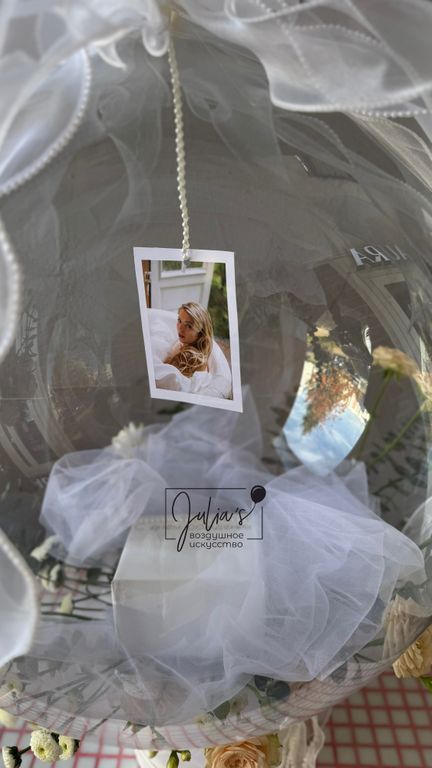 Шар с перьями и индивидуальной надписью + фотография (шар надувается воздухом) и ваш подарок