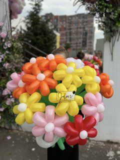 Композиция из 15-ти цветков с бантиком. Стоимость композиции может меняется в зависимости от кол-ва цветков в букете. Мы можем изготовить подобный букет в любой цветовой гамме. Стоит только захотеть! Высота 1 м. Доставка по Новой Москве круглосуточно.